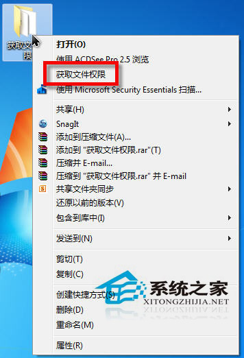 注:直接在explorer.exe文件上点击鼠标右键不会出现“获取文件权限”的菜单项。