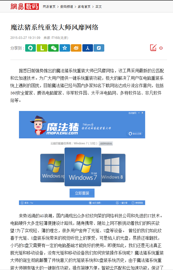 网易是中国领先的互联网技术公司,利用最先进的互联网技术,加强人与人之间信息的交流和共享,实现“网聚人的力量”。魔法猪系统重装大师因为其优越性和完美的用户体验也引起了网易数码的关注,网易数码对魔法猪系统重装大师进行了深入的报道。这些互联网巨头对魔法猪的关注,让魔法猪倍感欣慰,我们会继续努力的!